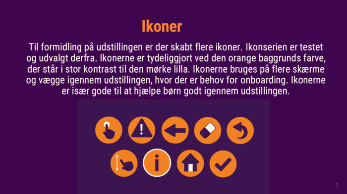 Som en del af projektet udarbejdede vi også en designmanual, der samler den visuelle identitet. Manualen indeholder bl.a. farvepalette, typografi, ikonografi og eksempler på, hvordan stilen anvendes på tværs af løsningerne. Den sikrer en rød tråd og et genkendeligt udtryk i formidlingen af projektet.